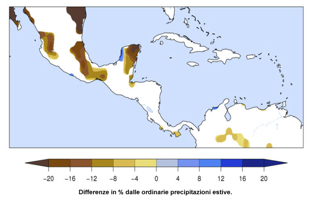 L'effetto è più evidente sulla penisola dello Yucatan e nel Messico meridionale, aree che corrispondono con i centri della civiltà maya e azteca e avevano alti livelli di deforestazione e le popolazioni più densamente concentrate. I livelli di precipitazioni sono diminuiti, per esempio, di ben il 20 per cento su parti della penisola dello Yucatan tra l’800 e il 950 d.C.